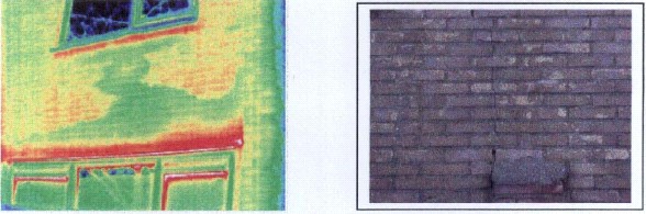 图3、墙体裂缝红外热像图。*右边的为中间建筑物的可见光图像。