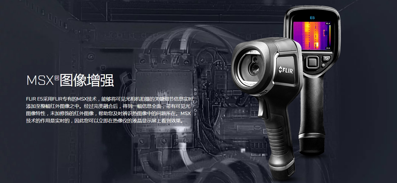 FLIR E6采用FLIR专有的MSX技术,能够将可见光相机拍摄的关键细节信息实时添加至整幅红外图像之中。经过上乘融合后,得到一幅信息图,带有可见光图像特性,未加修饰的红外图像,帮助您及时辨识热图像中的问题所在。MSX技术的作用是实时的,因此您可以立即在热像仪的液晶显示屏上看到效果。