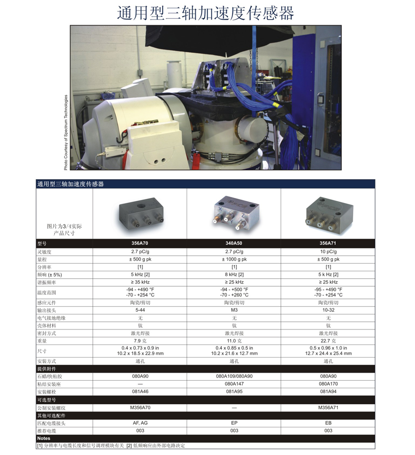 常用的技术是ICP加速度传感器,因而需要ICP电源供电。大多数现代数据采集、数字控制和便携式数据系统提供ICP传感器电源。ICP传感器可以被称为电压模式输出的传感器。我们的压电传感器可以被称为电荷输出型的传感器。美国PCB加速度传感器340A50每个方向轴测量需要一个通道的数据系统或信号适调仪。