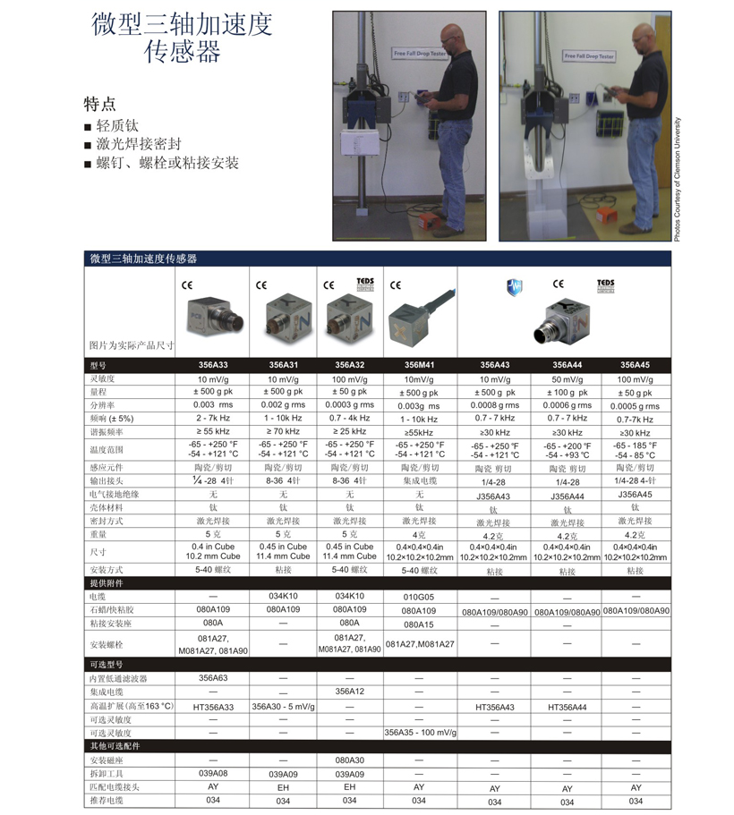美国PCB加速度传感器 356A32 微型三轴加速度传感器 加速度计 产地:美国