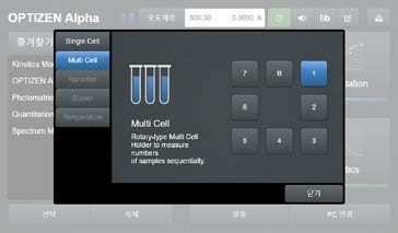 5.不用进入模式就可以选择比色皿类型来进行测量及监控, 快捷菜单上的比色皿类型图标会随着比色皿类型状态或是位置发生变化, 可方便地确认比色皿的目前状态