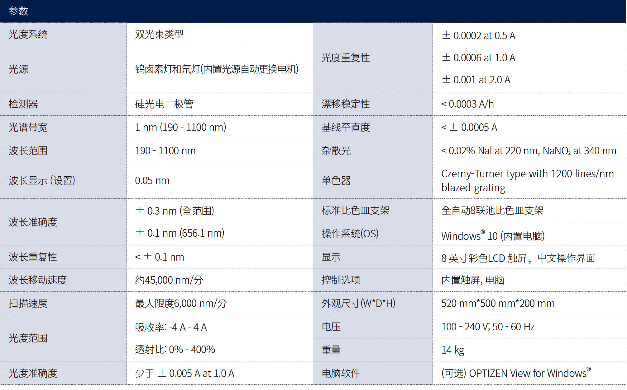 OPTIZEN Alpha采用**的设计, 是双光束类型的紫外可见分光光度计。OPTIZEN Alpha在紫外和可见光范围中测量样品的各波长透射比或者吸光度来了解浓度或者纯度等定量特征。该产品不仅可以用于一般分析实验, 还可以用于专门的研究领域, 并保证**的测量和出色的重现性, 因此可被广泛应用于环境, 生物技术, 化学等各个领域并提供可靠的实验结果。