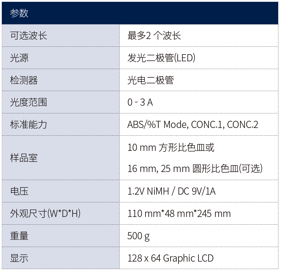 ·可适用的比色皿尺寸: 10 mm标准方形比色皿/?16mm和?25mm圆形比色皿(可选)