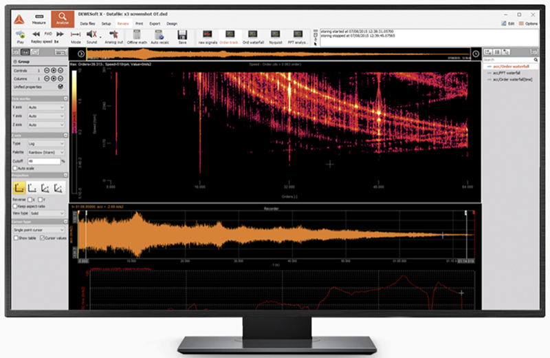 所有 Dewesoft 数据采集系统均免费提供屡获殊荣的 DewesoftX 专业版 数据采集软件。DewesoftX 是世面上先进且易于使用的数据采集和信号处理软件。 DewesoftX 的灵活性和不断增加的信号处理功能将帮助您解决所有测试和测量需求。与其他 DAQ 系统相比,我们的DAQ 软件为您提供了许多优势。即插即用,硬件自动检测,智能 TEDS 传感器,上等存储、实时显示以及强大的数学库等功能将把测量和分析功能不断提升到新的水平。