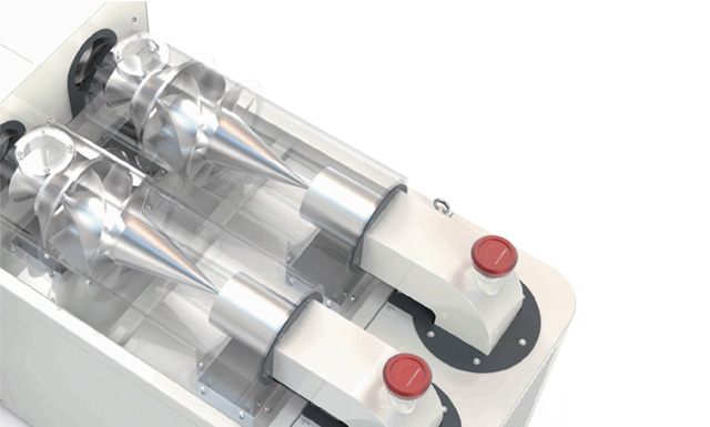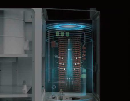 气流,通过一种空气动力学导流叶片腔变成高速旋转的螺旋气流,达到每分钟4000转,从而产生超过100倍于重力的离心力。99.7%的粉尘颗粒在此离