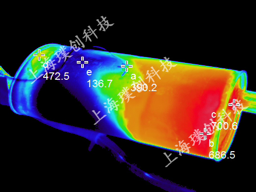 汽车排气系统制造厂使用红外热成像仪对汽车排气管进行温度场分布数据采集,后续进行数据分析和产品研发。