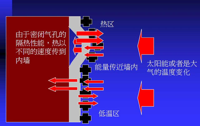 从外墙表面温度信息能够获取墙身有没有缺陷,当阳光照射到建筑物表面时能量传进墙内,由于密闭气孔的隔热性能,热以不同的速度传到内墙,在NEC红外热像仪会产生热区域和冷区域从此判断是否有缺陷。
