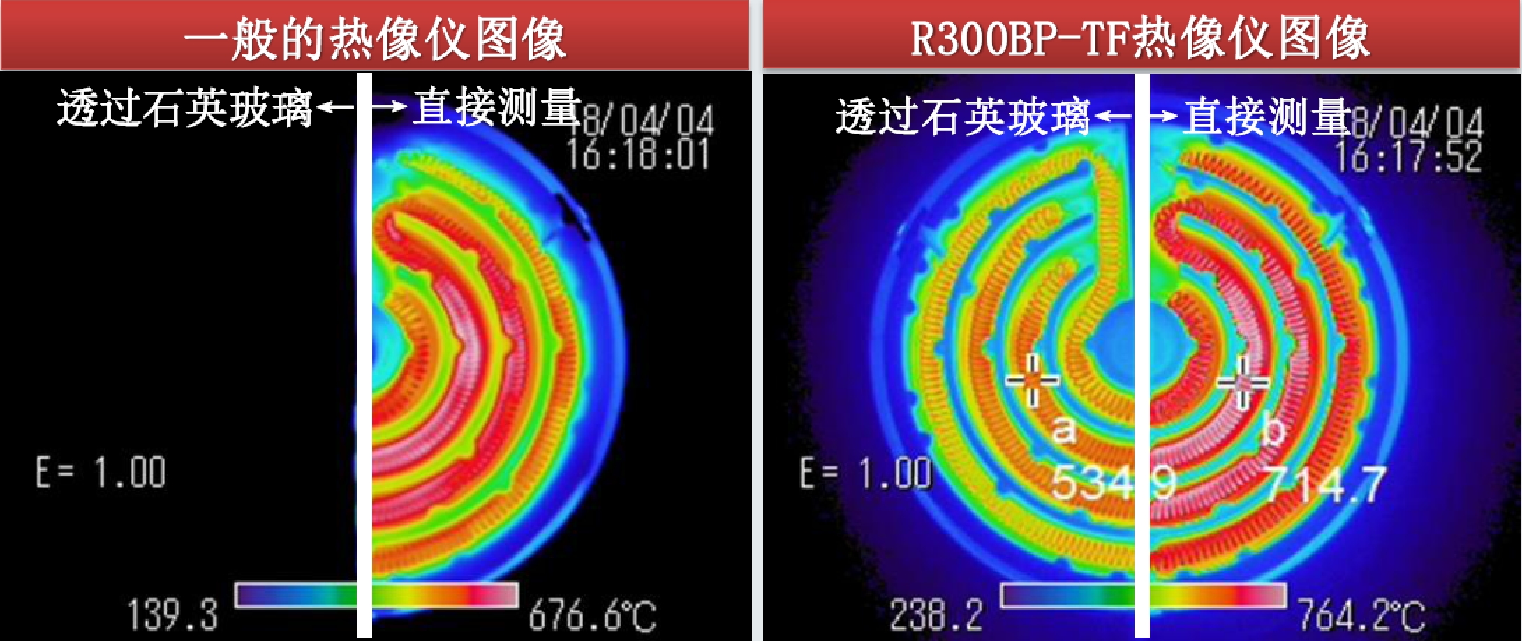 Avio(NEC)R300BP -TF 可以测量石英玻璃之后和炉内火焰 之后的物体温度。