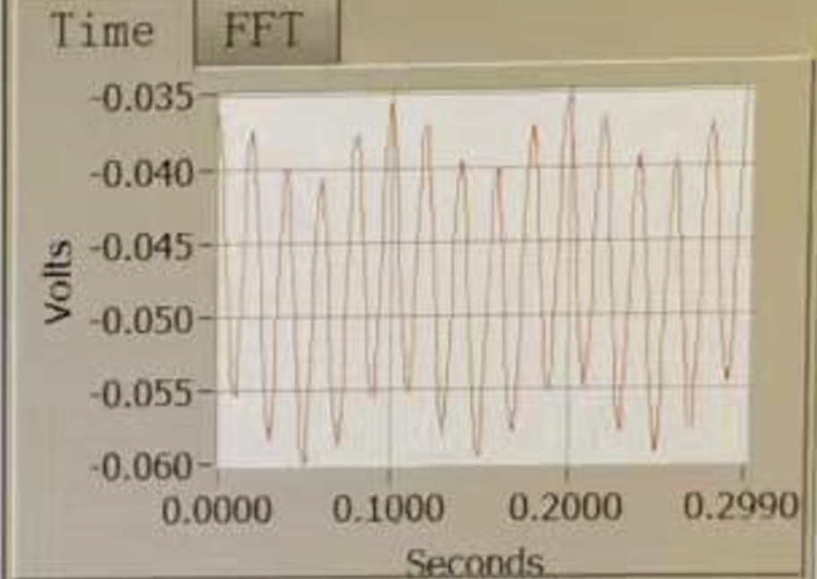 传感器曲线输出异常通常是传感器本身引起的。除此之外,需要排查一下是否有50Hz的工频干扰,如果出现工频干扰,检查一下传感器的接地以及信号适调仪的接地情况,可以尝试看看是否有改善。另外,如果被测传感器的输出曲线信噪比太小,建议把适调仪的增益加大以提高信噪比。